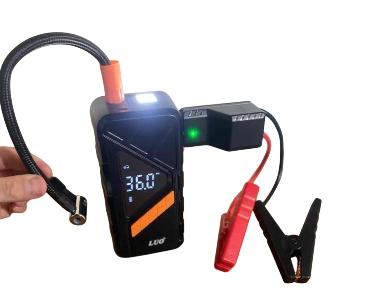 El Compresor de Aire Portátil 3669 es la solución práctica y eficiente para quienes necesitan movilidad, seguridad y versatilidad en el día a día. Con un diseño compacto y moderno, funciona como compresor de aire, linterna LED, cargador portátil y encendido de emergencia, todo en un solo dispositivo. Equipado con batería interna de 2000mAh x4, conexión USB Tipo-C, pantalla digital iluminada y alta precisión de medición, este modelo es ideal para inflar neumáticos, pelotas, flotadores y mucho más, con total practicidad dondequiera que estés.